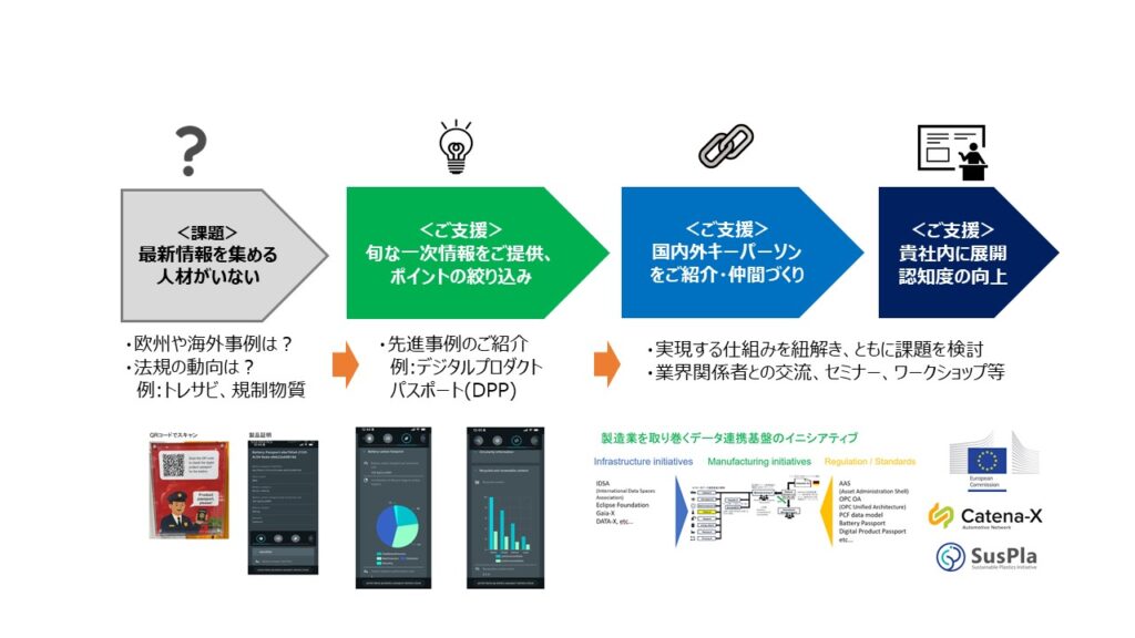 私たちを取巻く状況はつねに変化しています。検索では探せない、世界の一次情報をタイムリーにご提供します。また、それらを活用して貴社内への情報共有、プロジェクトの立ち上げもお手伝いします。